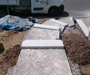 Marche-bloc et opus granit Réalisations > Escaliers > Marche-bloc et opus granit Escalier avec marche-bloc et opus granit à Grundviller